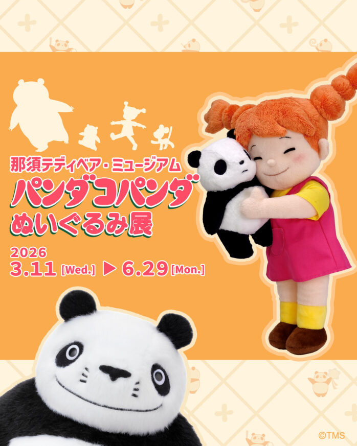 那須テディベア・ミュージアムでは2026年3月11日(水)~2026年6月29日(月)の期間中「パンダコパンダぬいぐるみ展」を開催いたします。