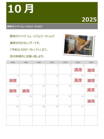 ご予約は必ず那須テディベア・ミュージアム0287-76-1711までお願い致します。