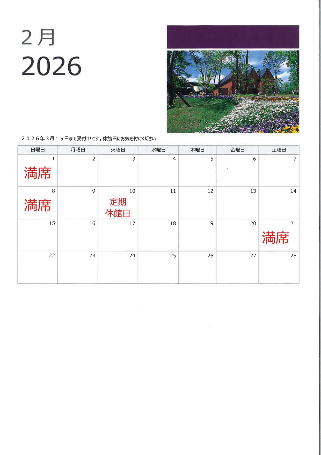 2026年2月10日(火)・3月10日(火)定期休館日につき