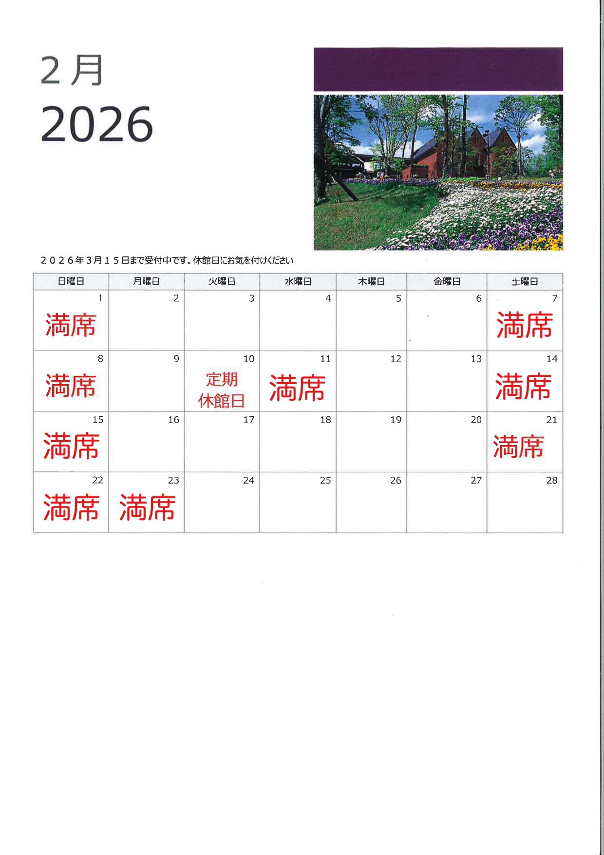 2026年2月10日(火)・3月10日(火)定期休館日につき